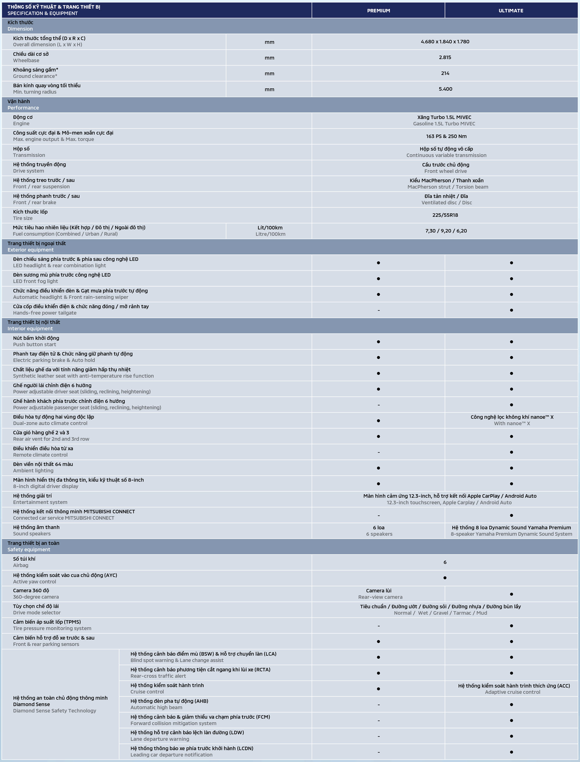 Mitsubishi Destinator là mẫu SUV 7 chỗ hoàn toàn mới, nổi bật với thiết kế mạnh mẽ, động cơ 1.5L Turbo và nhiều công nghệ an toàn hiện đại. Xe sở hữu nội thất rộng rãi, tiện nghi với màn hình giải trí 12.3 inch hỗ trợ kết nối không dây. Khoảng sáng gầm 214 mm giúp Destinator linh hoạt trên nhiều dạng địa hình. Mitsubishi Destinator là lựa chọn lý tưởng cho gia đình và người yêu thích sự đa dụng.